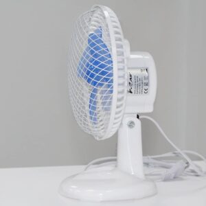 Ventilatore da tavolo con clip di fissaggio bianco