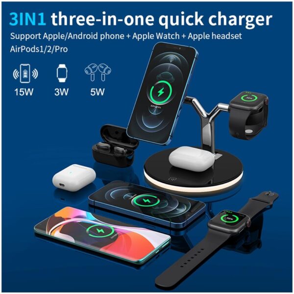 per iphone 12s / 12 pro max / 12 pro / 12 mini / 12? per l’orologio 6 5 4 3 2 per airpods pro controllo tuch piccola luce led ledelenco prodotti caricabatterie wireless 3 in 1