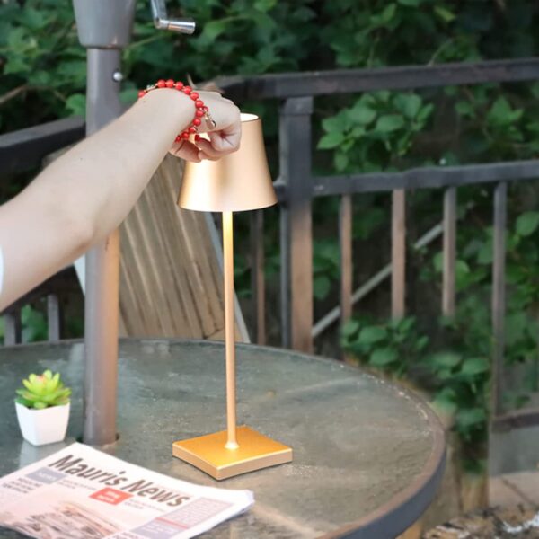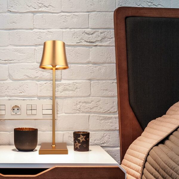 Essendo dimmerabile, ha diverse impostazioni di luce per variare l’intensità luminosa della lampada al solo tocco essendo touch dimmer. È perfetta per illuminare un tavolino da caffè in quanto fornisce una luce morbida e regolabile con tonalità 3000k, il suo colore oro la rende una lampada da tavolo lussuriosa per ambienti raffinati ed eleganti.