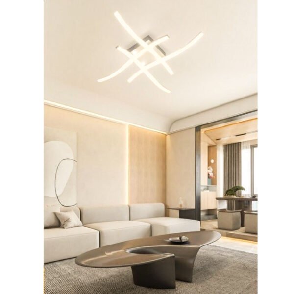 Plafoniera moderna a LED con un accattivante design con 4 braccia curve luminose, illuminerà il tuo spazio con stile. La plafoniera adotta uno stile di design semplice ed è facile da installare. La plafoniera è composta da una base e bracci in alluminio e pvc. L’elegante lampada aggiunge un tocco di modernità e moda all’interno della tua casa. Questa plafoniera moderna creerà un ambiente caldo e accogliente, adatto per soggiorno, camera da letto, bagno, cucina, ufficio, caffetteria, bar, ecc. La qualità e la forma della lampada da soffitto le permettono di illuminare bene l’ambiente sottostante. Grazie al suo design originale e moderno il lampadario si armonizza perfettamente con molti stili di arredamento e può essere inserito in varie stanze.