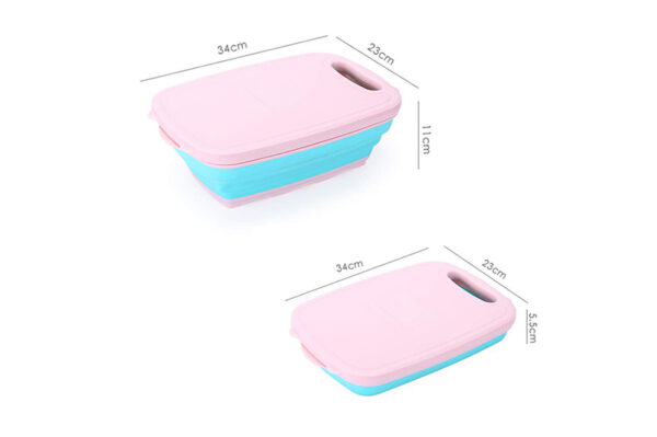 Il tagliere compreso di cestello ribaltabile per tagliare frutta e verdura in modo semplice e veloce!